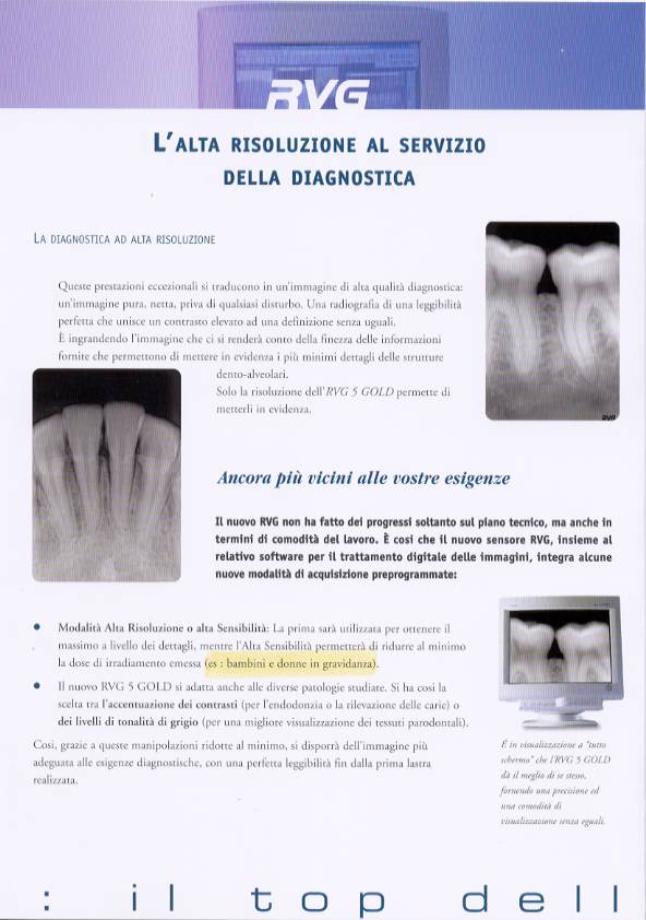 La VIDEORADIOGRAFIA è un sistema digitale di ultima generazione da KODAK,che permette un maggior dettaglio dell'immagine e la sua elaborazione su computer per una diagosi più accurata.Importante é il fatto che per eseguire una VRG necessitano basse dosi di radiazioni per una maggiore sicurezza per il paziente specie se bambino o in gravidanza.